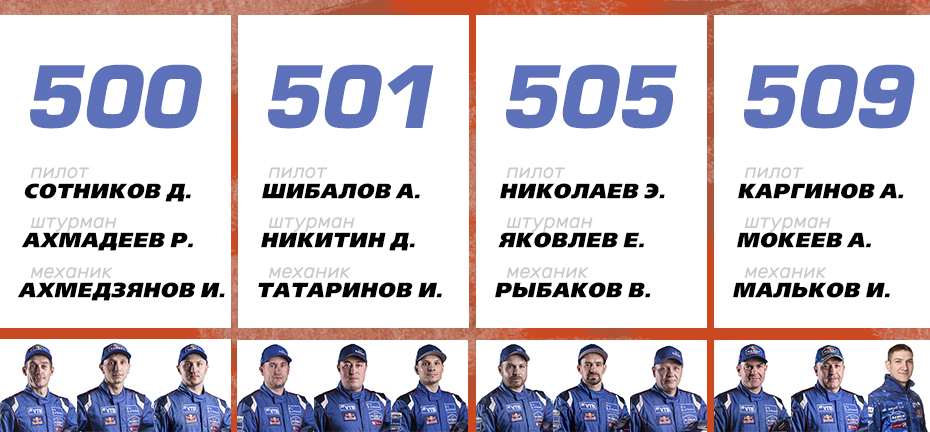 Участники марафона от России команда «Камаз-мастер» уже прошла технический контроль и с легким сердцем отправила свою технику из марсельского порта в Саудовскую Аравию. Команда спортсменов будет выступать на четырех спортивных грузовиках, два из которых всем привычные КАМАЗ-43509 и два новых КАМАЗ-435091. Вся техника, включая обслуживающую, оснащена шинами Goodyear Offroad в размере 375/90R22.5. И это не случайно.